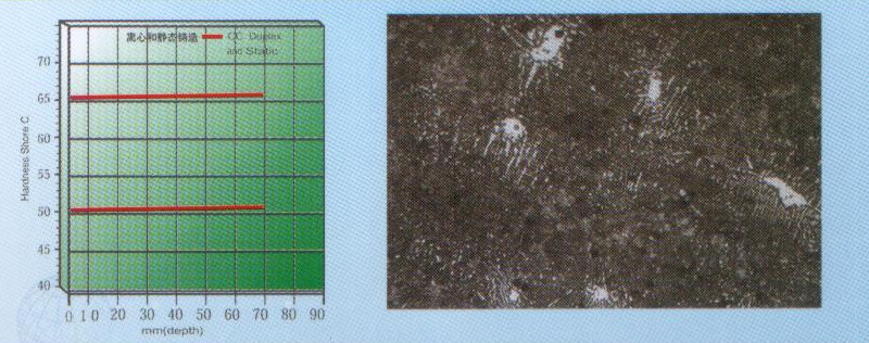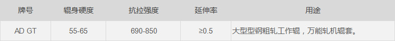 GT半鋼軋輥是性能介于鋼輥和鐵輥之間的一種軋輥材質(zhì),含有鎳、鉻、鉬等合金元素,其基體組織中含 有一定量的碳化物,采用特殊的熱處理工藝,有高的耐磨性、強的韌性和好的抗熱裂性,最大的特點是 在工作層中幾乎沒有硬度降落。適合帶鋼熱連機粗軋、精軋前段;棒線軋機粗軋、中軋、預(yù)精軋機架; 萬能軋機、懸臂軋機輥環(huán)、輥套。