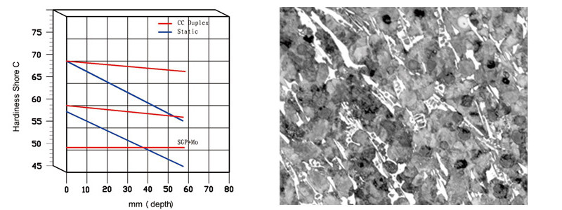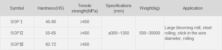 Spheroidal pearlite Alloy Roll is pearlite in matrix was accounted for more than 80% of the nodular cast iron roll. Nodular cast iron, nickel, chromium and molybdenum alloy element in pearlite ductile iron roll with special heat treatment. Pearlitic nodular cast iron roll has a good strength, high temperature performance and accident resistance, low layer hardness drop.