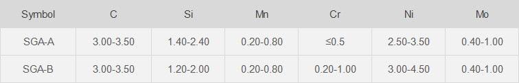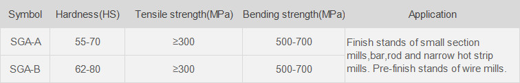 Alloy elements of NI,Mn,Cr,Mo etc, are added to bainitic nodular cast iron rolls to obtain acicular(bainite-martensite)matrix in its microstructure of these rolls. Its strength and toughnes is higher than Perlitic Nodular Cast Iron Rolls, wearability is also better than latter.
